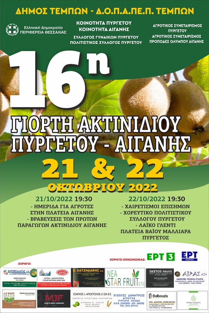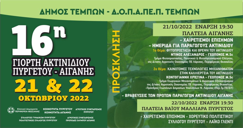 16η Γιορτή Ακτινιδίου Πυργετού-Αιγάνης 21 & 22 Οκτωβρίου 2022