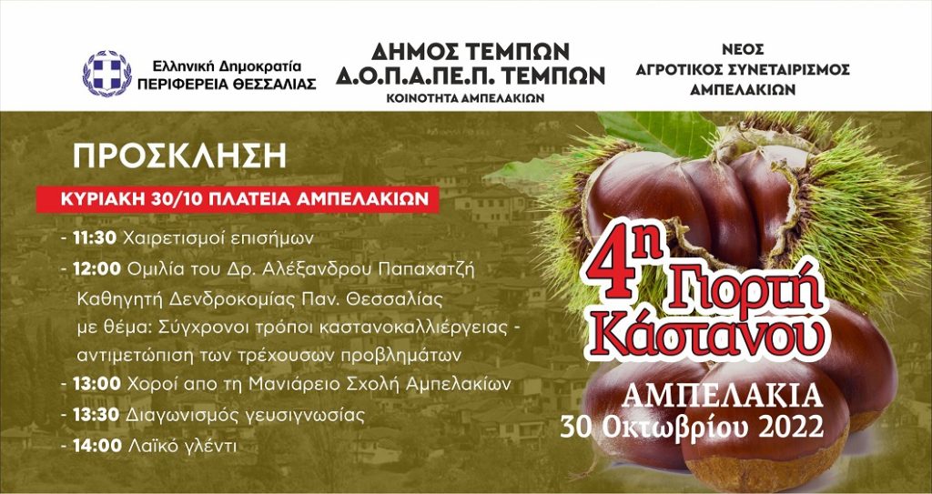 4η Γιορτή Κάστανου Αμπελάκια 30 Οκτωβρίου 2022