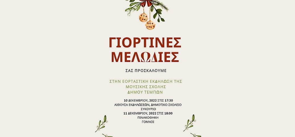 “Γιορτινές Μελωδίες” : Εορταστική Εκδήλωση της Μουσικής Σχολής Δήμου Τεμπών