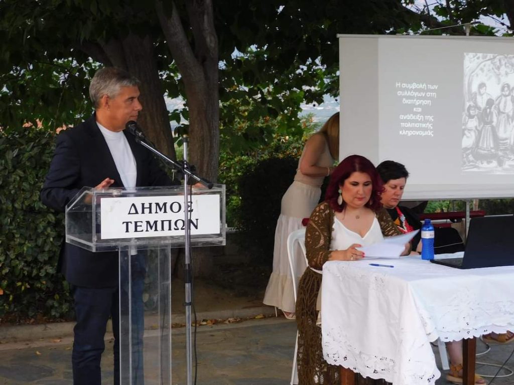 Στο πλαίσιο αυτό, ο Δήμος Τεμπών, το Λαογραφικό Ιστορικό Μουσείο Λάρισας, σε συνεργασία με την Περιφέρεια Θεσσαλίας και τους Συλλόγους του Δήμου Τεμπών, συνδιοργάνωσαν πολιτιστική εκδήλωση με θέμα: “Η συμβολή των Συλλόγων στη διατήρηση και ανάδειξη της πολιτιστικής κληρονομιάς”.