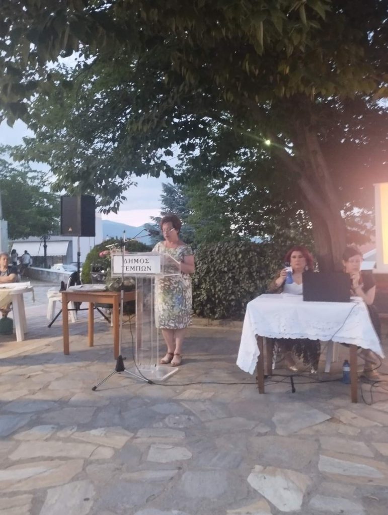 Ακόμη, ευχαριστώ θερμά τους Συλλόγους του Δήμου, που συμμετείχαν στην εκδήλωση και τους Συλλόγους του Δήμου Τεμπών που παρευρέθηκαν στην εκδήλωση με παρουσιάσεις και βιωματικές δράσεις, καθώς και τους Συλλόγους από τη Λάρισα.