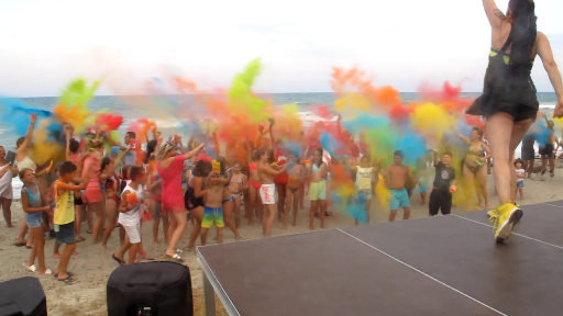 Στη συνέχεια, διασκέδασαν με τις χρωματιστές σκόνες υπό τη συνοδεία της μουσικής. Κέφι, χορός, διασκέδαση, βουτιές, χρώμα και πολλά πολλά χαμόγελα “χρωμάτισαν” τον καλοκαιρινό ουρανό!
